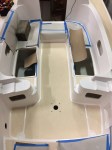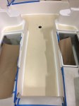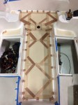 Stand alone panel construction: 3/8″ solid teak adhered to 10 oz. fiberglass cloth and seams filled with TDS seam caulking. Panels then adhered as solid units to cockpit sole.